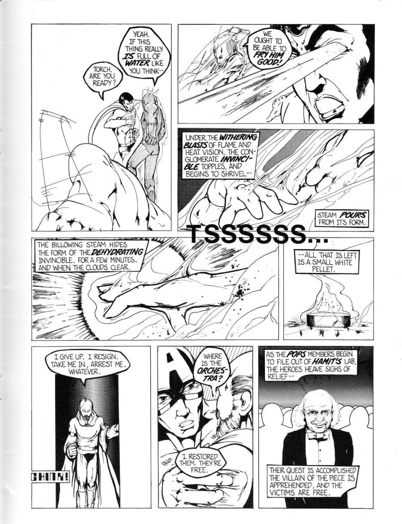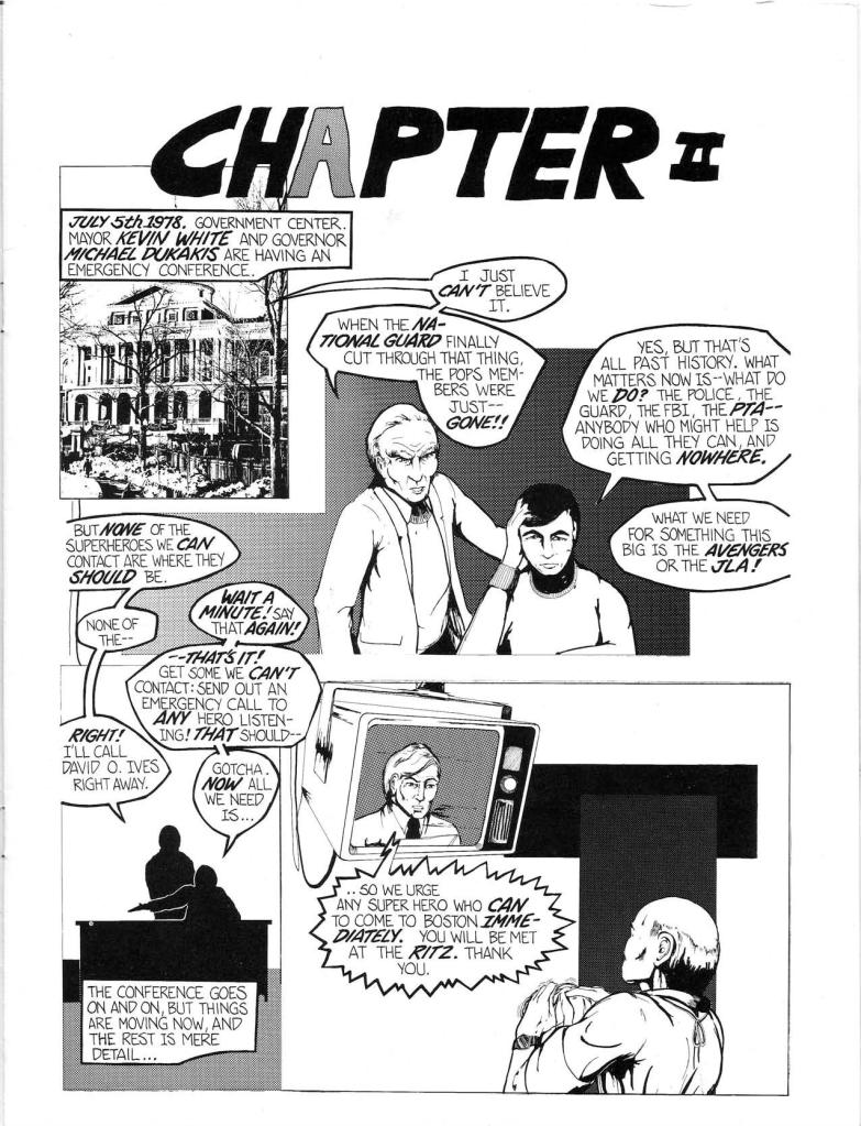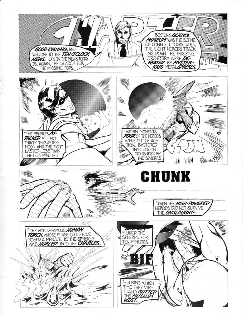 POW! BIFF! POPS! was written by a very young and pre-professional Kurt Busiek. The pages were laid out by a young Scott McCloud, and lettered by a young Richard Howell. All were fans in the Massachusetts area during this time (Howell worked at the local comic book shop, the Million Year Picnic.) The finished artwork was done by Chris Bing, who didn’t go on to a career in the field, but he became a professional illustrator and a Caldecott Honor award winner for his picture-book adaptation of CASEY AT THE BAT.