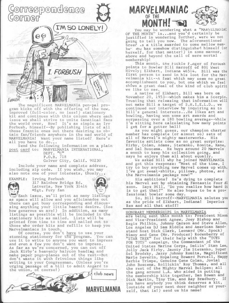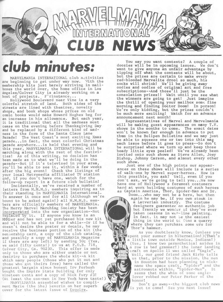 In 1969, when the Merry Marvel Marching Society was phased out in favor of a new Marvel fan club the rights to which were licensed to a fellow named Don Wallace (as talked about in the piece below:)
