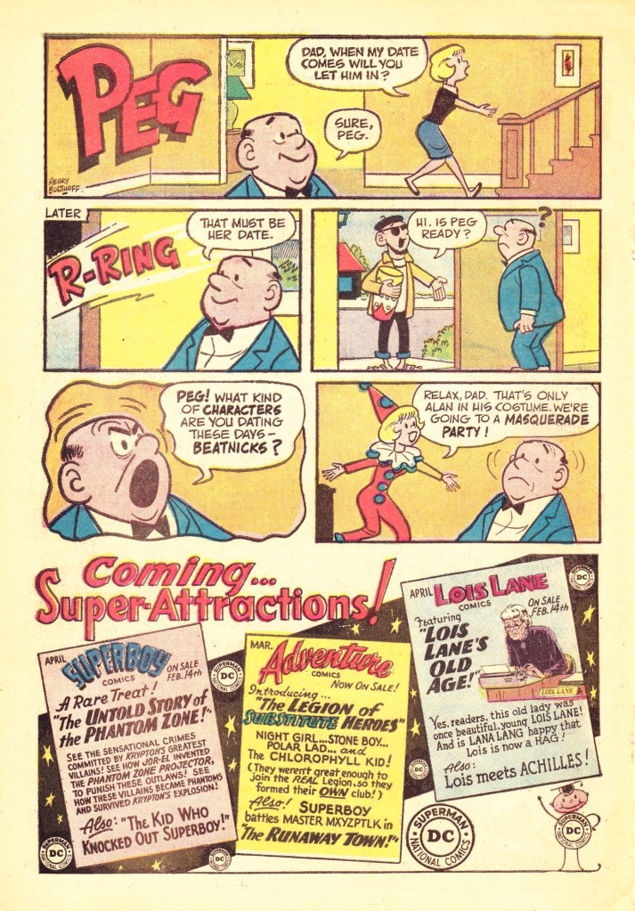There’s also a half-page edition of Coming Super-Attractions, in which Mort plugged a trio of his upcoming releases. These ads were almost all text based and a lot more focused on selling the magazines due to the intriguing story concepts rather than any visual component. How Jor-El discovered the Phantom Zone! The Legion of Substitute Heroes (one of my favorite concepts of the era)! Lois Lane as an old woman! With a tiny cameo from DC’s recently-introduced mascot Johnny DC to help seal the deal.