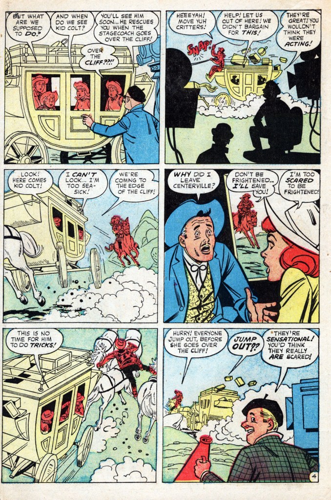 The name of teh actor playing Kid Colt is never given–he’s treated as though he was the genuine Kid Colt. And he comes across as something of a jerk here. Not sure how this might make anybody want to check out an issue of his comic book, but whatever.
