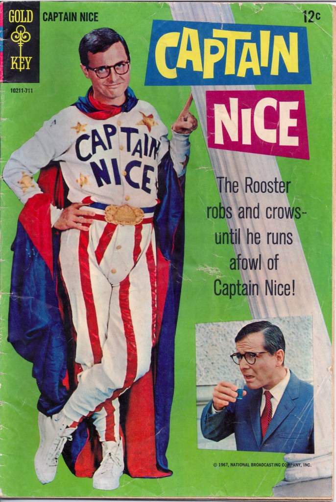 But that didn’t stop the character from entering the four color world his program was inspired by. Western Publishing, who were releasing their titles under the Gold Key imprint, had a long history of producing adaptations of then-current television programs and movies. So the prospect of being able to do the same with a super hero show must have seemed tailor made for the company. Sadly, much like the show that spawned it, CAPTAIN NICE was quickly discontinued in teh wake of the television program’s cancellation, lasting only a single issue.