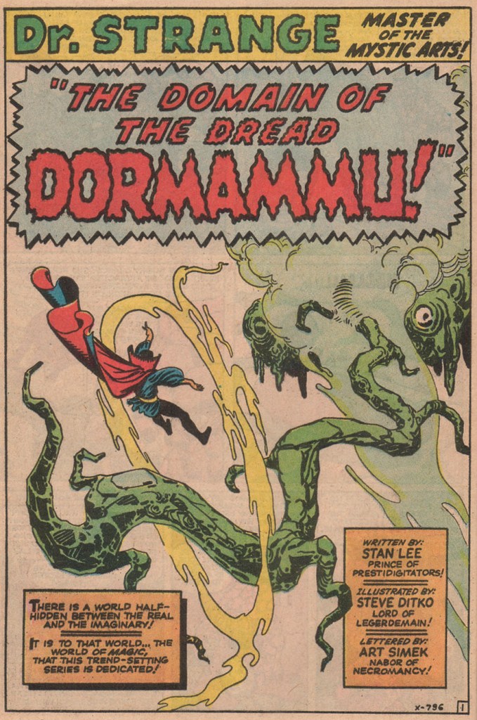 The story begins with Strange returning from the Ancient One’s abode from his previous adventure–only for him to be magically transported back there instantaneously. It turns out that an emissary of Dormammu has come to alert the Ancient One that the lord of the Dark Dimension intends to sally forth onto Earth. This cannot be permitted to happen, and yet the Ancient One is too old and infirm to face him–so Doctor Strange volunteers his services. In order to make his way to Dormammu’s stronghold, Strange must pass through layer upon layer of the dark Dimension, facing and defeating assorted mystic challenges along the way. His struggle is witnessed by Clea, who has never seen such unselfishness and heroism before. She warns Doc not to continue, but while the Earth is in jeopardy, Dormammu must be faced. And on the final page of this first chapter, Strange has made it into Dormammu’s presence, and he challenges the strange flame-headed being to combat in order to prevent him from making his way to Earth. And that’s where this story is To Be Continued!