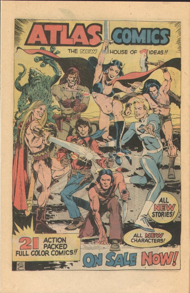 As we’ve discussed multiple times in the past, Atlas Comics was Martin Goodman’s short-lived publishing endeavor in which he attempted to prove that he, not editor Stan Lee, was responsible for the success of Marvel Comics after the ouster of his son Chip Goodman from the firm. Goodman wasn’t so much interested in selling comic books as he was in driving Marvel right off the stands, and he chose to do so by launching an entire line of 20 titles all at once in a bit of a blitzkrieg move. To secure the services of top flight talent, he made a bunch of promises about the return of original art and character equity and so forth–many of which were reneged on in practice. But for a brief shining moment there in 1975, Atlas Comics looked as though it might become a viable third mainstream action-adventure publisher.