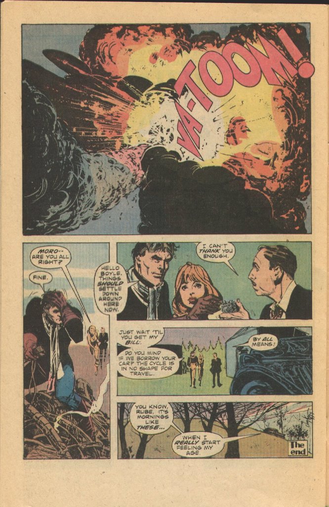 The artwork is also really nice and stylish. Chaykin was only just beginning to get his sea legs as a solo professional, having worked as an assistant for Gil Kane for some time, where he learned the basics of the craft. There’s also the hint of an influence from Walt Simonson in these pages, who was then sharing studio space with Chaykin. (In fairness, that might be a reverse-influence, where it was Simonson whose approach was affected by Chaykin’s work.)