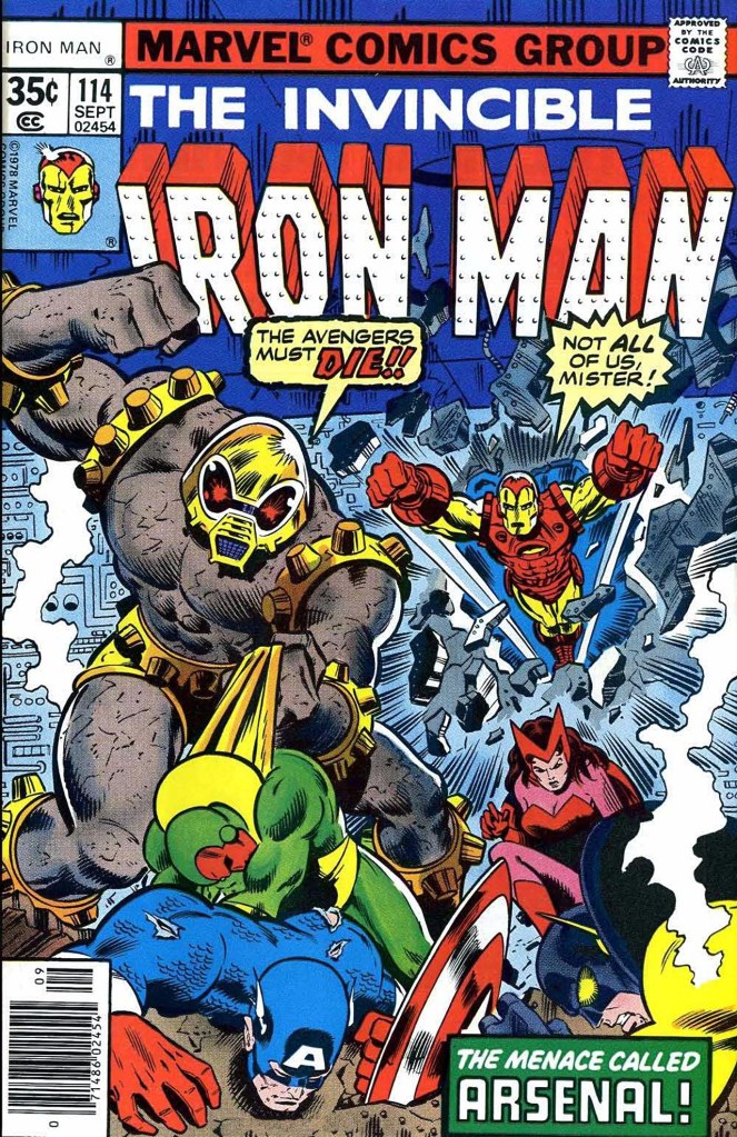 I wasn’t an Iron Man buyer back in ’78 so all this is new to me… except Arsenal whom I recall from Avengers Annual #9. The Annual was, well, ok-ish story-wise, but it sticks in my mind because it contains one of the relatively few art jobs that the late great Don Newton did for Marvel. He wasn’t well-served by Jack Abel on that book, but Joe Rubinstein proved a far more sympathetic inker.