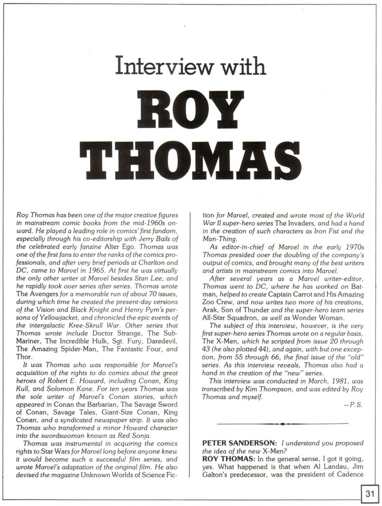 2 thoughts on “THE X-MEN COMPANION #1: Roy Thomas Interview
