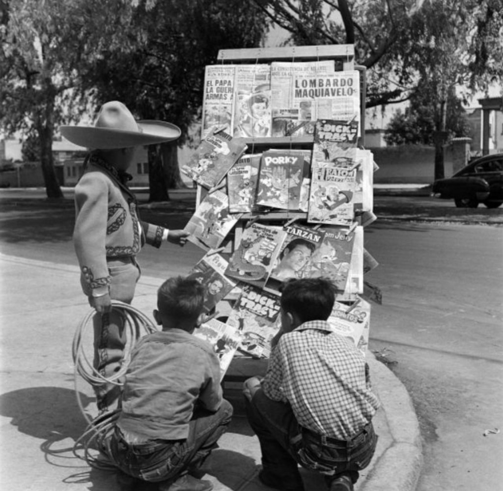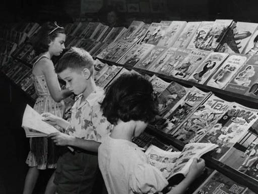 Once again, another collection of random old photographs showing either comic books of decades gone by on sale in their native time period or else being read and enjoyed by readers of that era. I know that we occasionally repeat a photograph in this series, an occupational hazard as I’m not keeping all that good a track of everything we’ve shown in the past 15 installments. But hopefully there’s something new and fun here to enjoy.