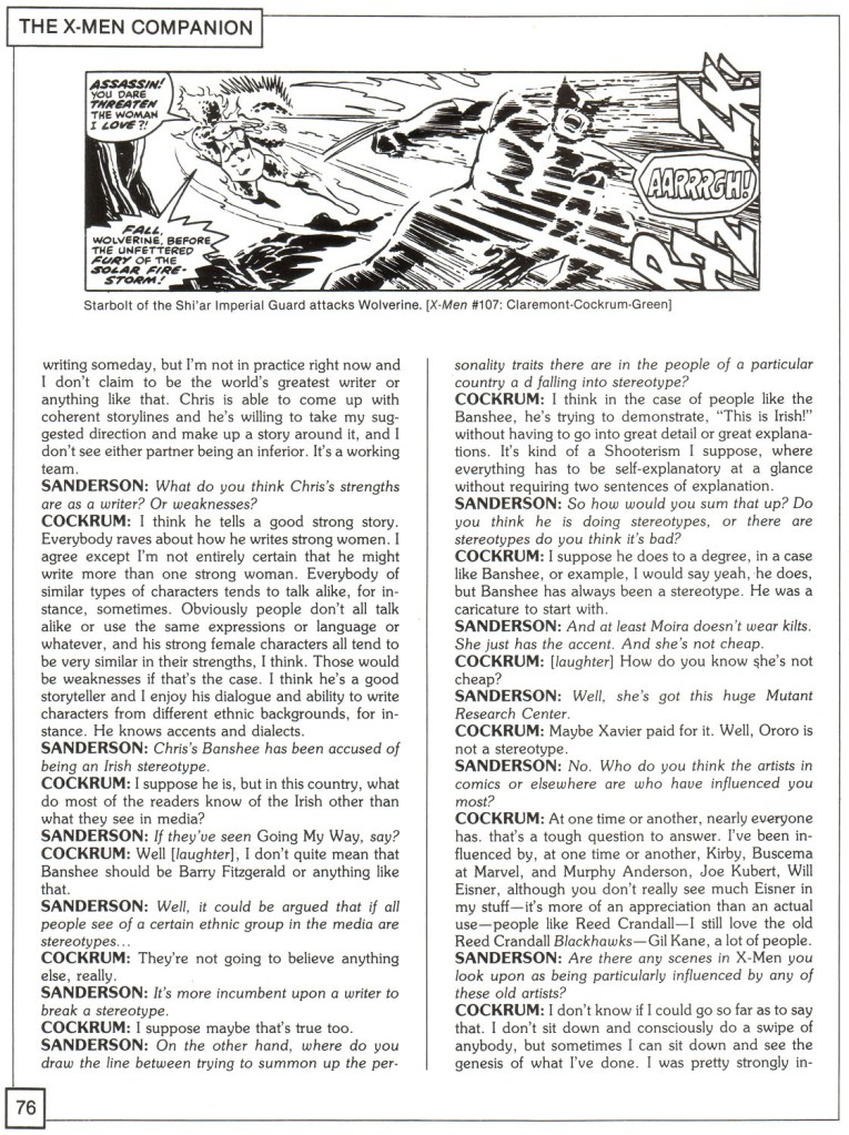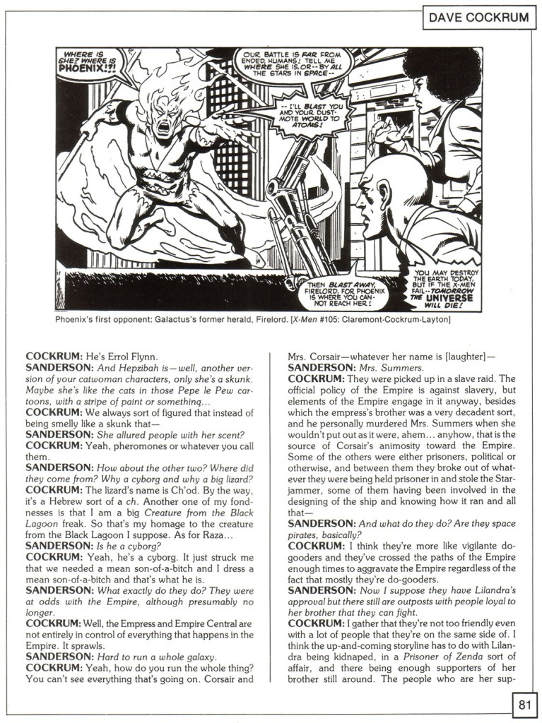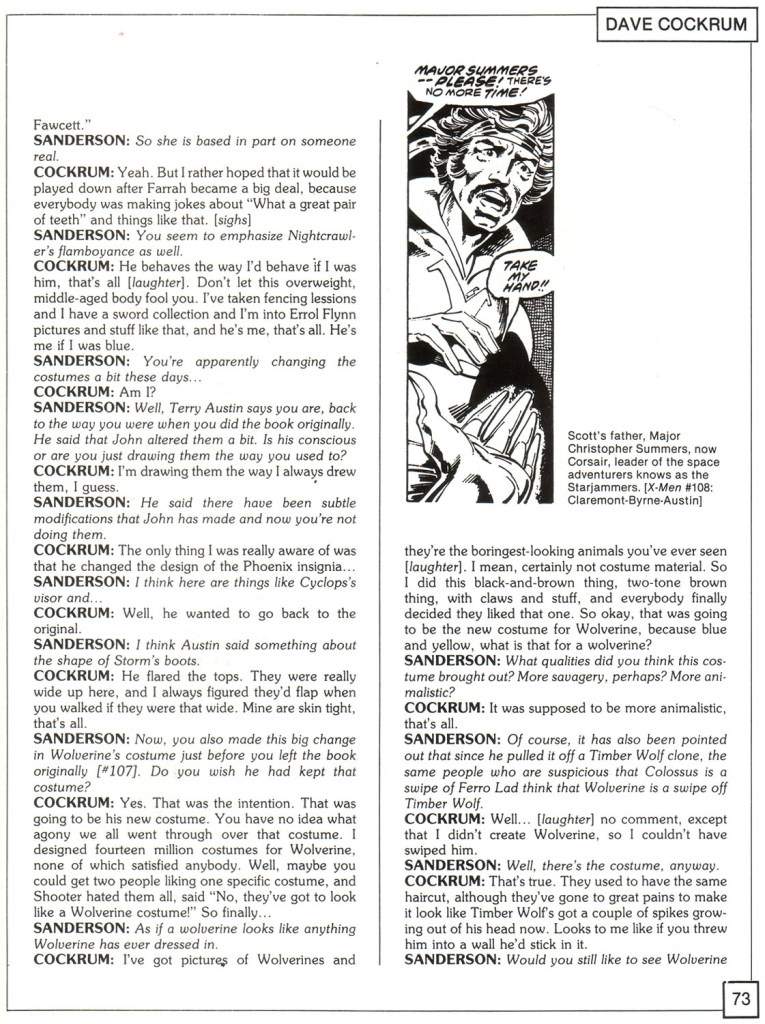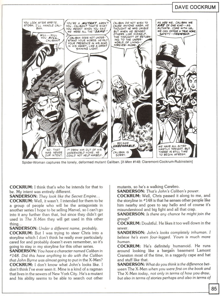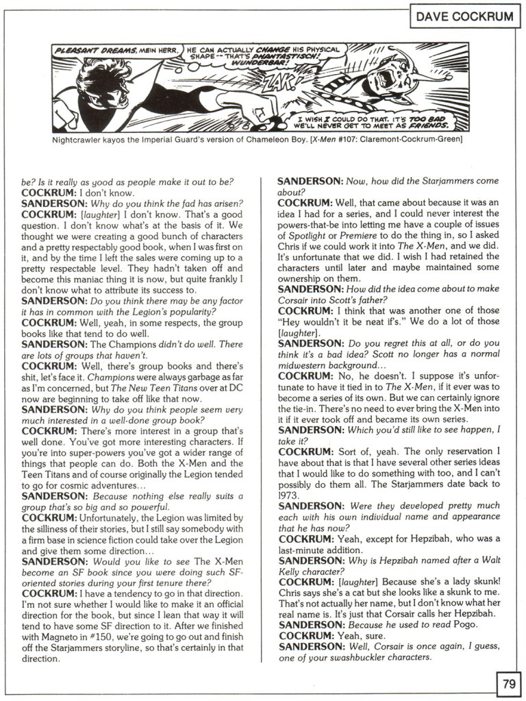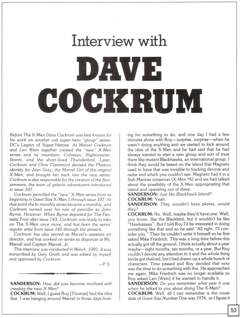 It’s more of the same here, another interview conducted by Peter Sanderson in 1982 for the first of Fantagraphics’ X-MEN COMPANION books commemorating the creation of the new series and its meteoric rise to popularity in the early Direct Sales market. This one was a bit more expansive a piece than the last two because it’s subject, Dave Cockrum, had not only been the artist and co-creator of pretty much all of the new characters, but he’d also returned to teh series recently following the departure of his hyper-popular successor John Byrne. When it came to talking about the early days of the All-New, All-Different X-Men, Dave was absolutely a primary source.