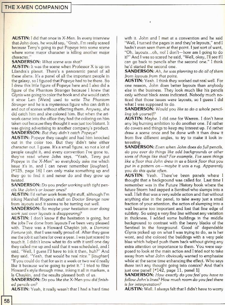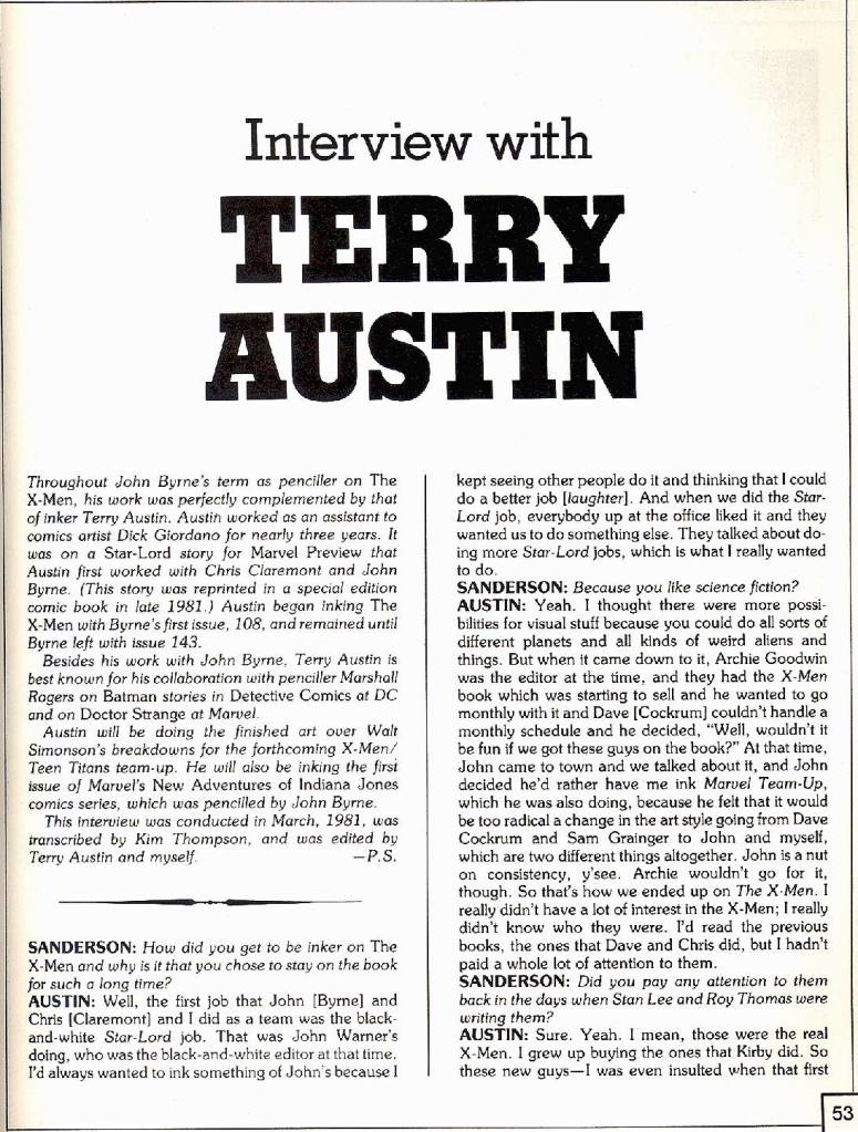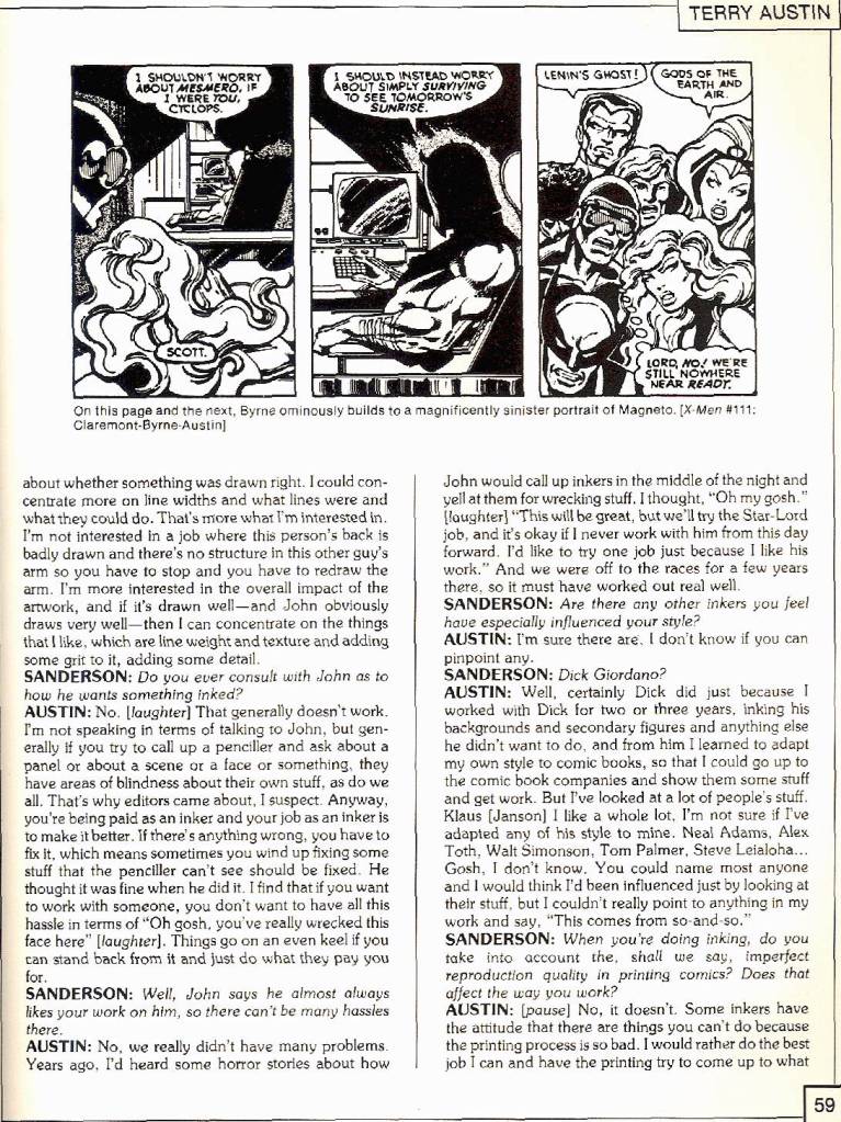 This time out, chronicler Peter Sanderson speaks at length with inker Terry Austin, who had been a consistent part of the creative team for as penciler John Byrne had, coming on board the series with John in issue #108.