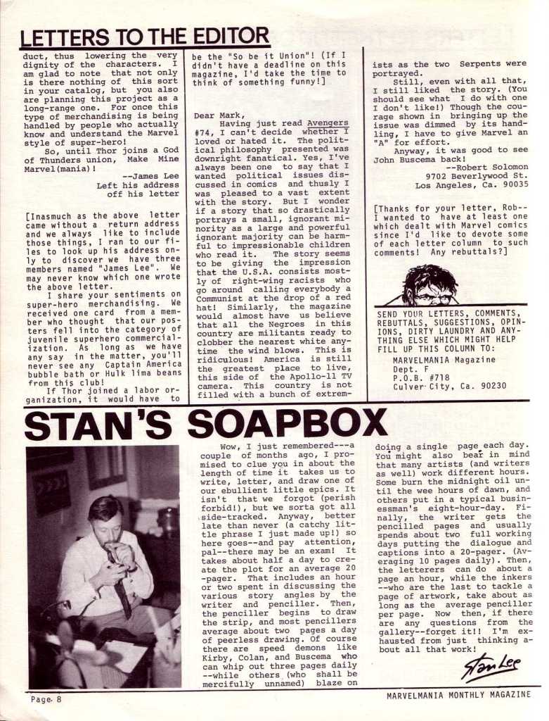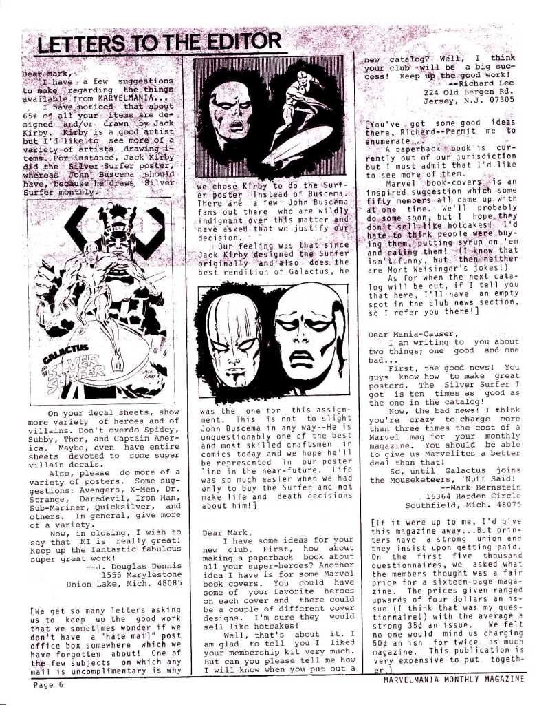 The magazine gives a nice sense of the era, and of what Marvel fans of the time were most concerned about. It’s also a bit rough around the edges, which only adds to its charm. Weird features such as the ad above for the line of posters that Marvelmania was selling were common throughout the run.