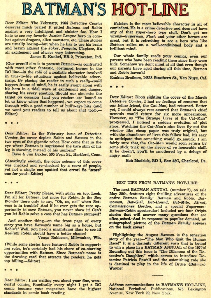 Schwartz had also inaugurated a letters age within DETECTIVE COMICS, something the title hadn’t had until he took it over. At this early stage, he’s still needing to fill it with letters concerning the last few Jack Schiff-edited stories, but that would change soon enough. As impersonal as this page still was, with the sign-offs still attributed to an anonymous editor, this too made the series feel more contemporary.