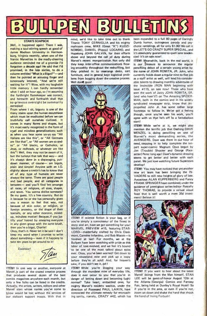 Speaking about the BULLPEN BULLETINS: when Herb Trimpe was a guest at a Seattle comic show EONS ago, I was lucky enough to =sit across from him at dinner one night. Everyone chatted, and I can’t remember exactly what stories were told, but I do remember, very clearly, at one point Herb said: “Remember those old Bullpen Bulletins? How they made it sound like Marvel was the best place in the whole world? It was BETTER than that!”