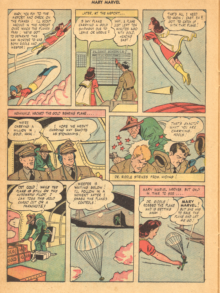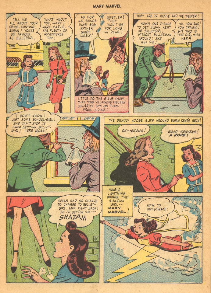 But this was her first time operating entirely independent of Bulletman, who doesn’t even make an appearance in this Mary Marvel story.