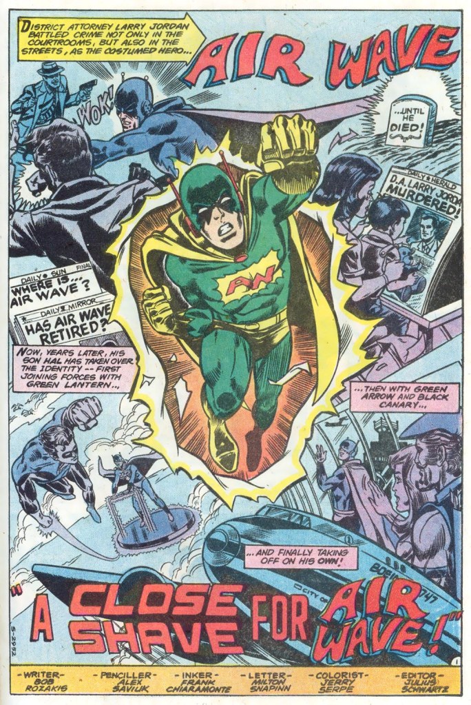 The back-up series, as mentioned earlier, was Air-Wave, an import from the pages of GREEN LANTERN. The strip was written by another one of Julie Schwartz’s young literary proteges, Bob Rozakis, and illustrated by promising newcomer Alex Saviuk. In just a few months, Saviuk would wind up replacing Irv Novick as the regular artist on THE FLASH as the title left Julie’s hands. His work was clean and straightforward. As for Rozakis, while he never became a huge fan favorite, I enjoyed all of his stories, particularly those featuring younger characters such as Robin, Batgirl and the Teen Titans. So Air-Wave was very much up his alley.