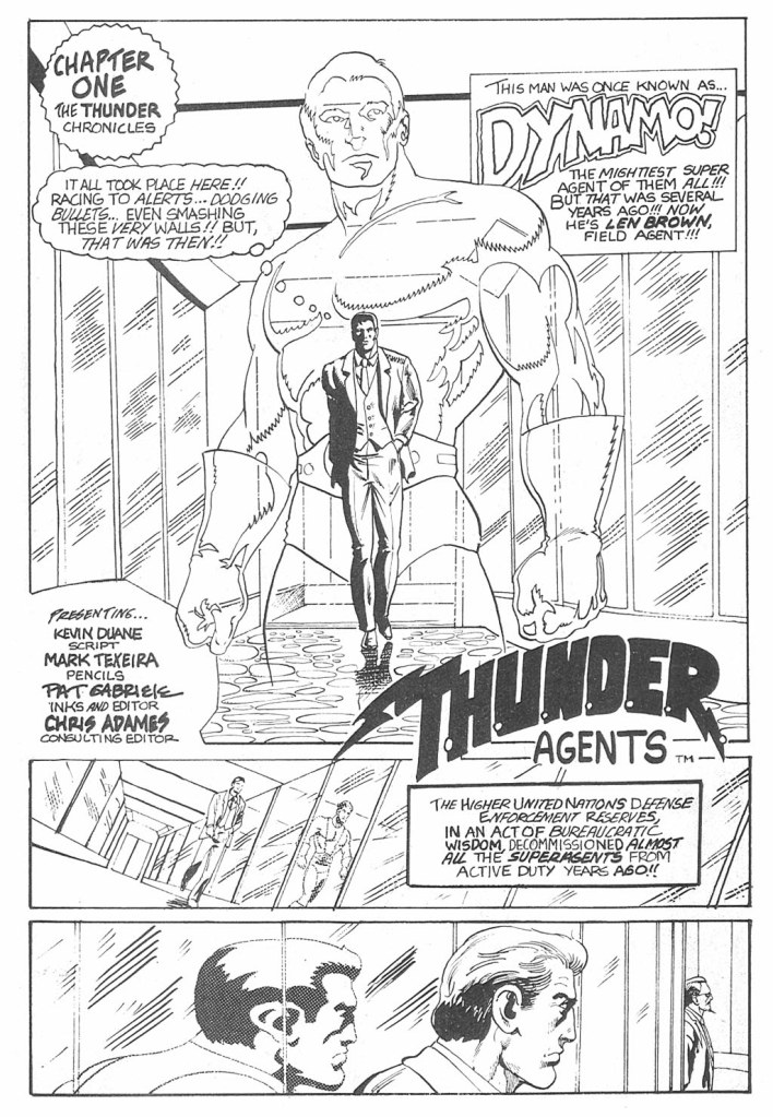 One of the earliest players to enter the field was John Carbonaro. A longtime comic book fan, Carbonaro had set himself up with a stake that he hoped would bring eyes to his new venture. Noting that Tower Publications hadn’t done anything with their short-lived but fondly remembered T.H.U.N.D.E.R. Agents characters since the late 60s and the pop of the Silver Sage super hero bubble, Carbonaro arranged to purchase all of the rights to those characters himself, and set out to publish new stories with them. This venture would consume the rest of his life, and while he insisted to his dying day that the T.H.U.N.D.E.R. Agents were a gold mine waiting to happen, he could never quite get the deal he wanted to make them successful again..