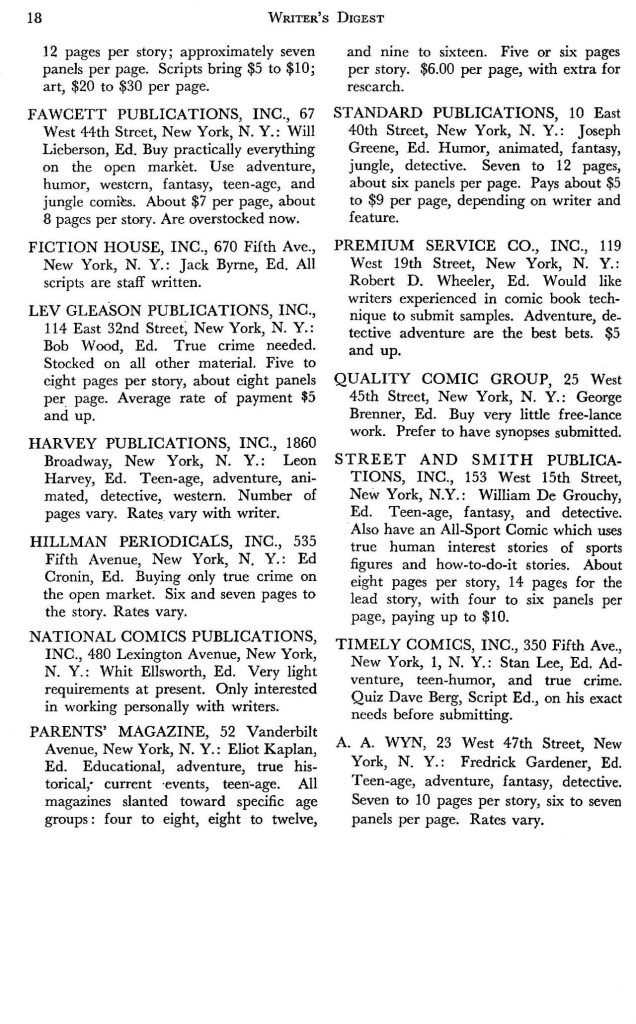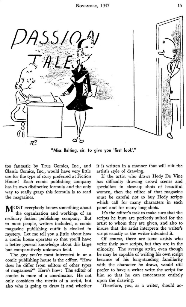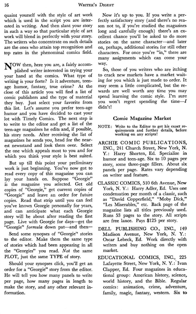 But beyond that, Stan also penned this article that saw print in WRITER’S DIGEST MAGAZINE’s November 1947 issue, numbered Volume 27, #12. It’s a concise summary of how a comic book is put together and what the various editors and publishers are looking for. And presumably, it brought Stan another small per-word fee.