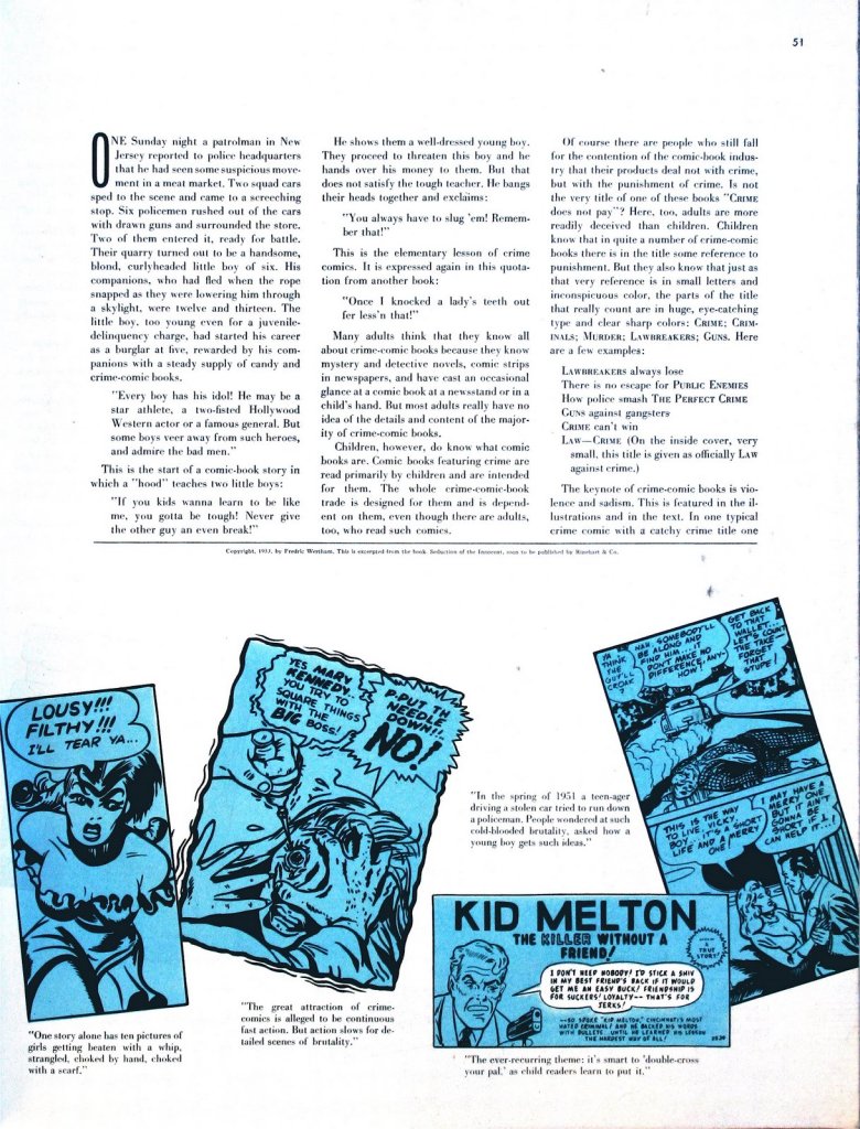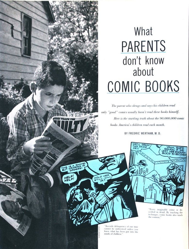 The excellent “Ten Cent Plague” on the comics censorship movement points out how flimsy Wertham’s arguments were. Ignoring that lots of law abiding kids read comics. Arguing that “this kid committed a horrible violent act” was self-evident proof they’d been warped by crime comics.