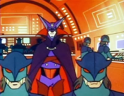 BATTLE OF THE PLANETS was a great-looking show, especially for the time in which it first aired. The animation was beautiful, the designs were great (and very Americanized in the manner of traditional super heroes, a fact that made it more appealing to me) and the music was excellent. sandy Frank had wisely left most of the original GATCHAMAN score intact, bolstered by a powerful new orchestral opening song that was similarly rich and evocative. The one big downside to the music is that the material often had to be edited for American broadcast standards–SCIENCE NINJA TEAM GATCHAMAN was a lot more overtly violent than broadcast standards was comfortable with in 1978, requiring cuts to be made. Whenever a scene or sequence was cut, the music would skip–which was something I didn’t really notice in 1978 but which bugs the crap out of me today if I sit down to watch an episode. As well as the violence, localized Japanese material also needed to be excised, as did anything provocative or sexual. In particular, Zoltar’s original GATCHAMAN incarnation Berg Katse is a Trans character, an Earth female imbued with the spirit of a male Galactor sub-general. But that was way too dicey for American animation in 1978, so any time Zoltar appeared outside of his usual foxlike purple costume, he was said to be not himself but rather “Zoltar’s sister.”