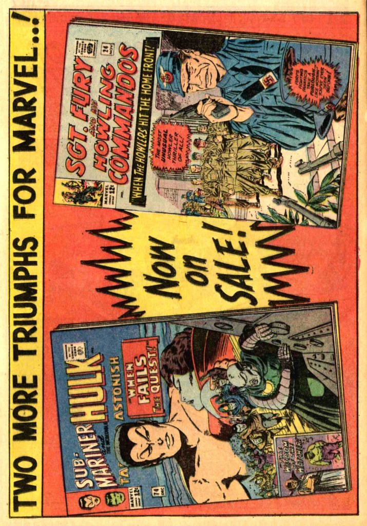 Quick break here for a house ad spotlighting Marvel’s two best-selling titles of the era, FANTASTIC FOUR and AMAZING SPIDER-MAN. For the record, JOURNEY INTO MYSTERY/THOR was the third.