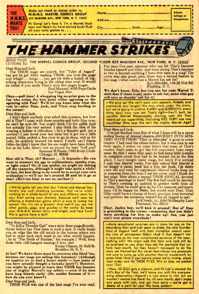 And the issue closes out with the single-page The Hammer Strikes letters page. Stan has his patter down pat by this point.