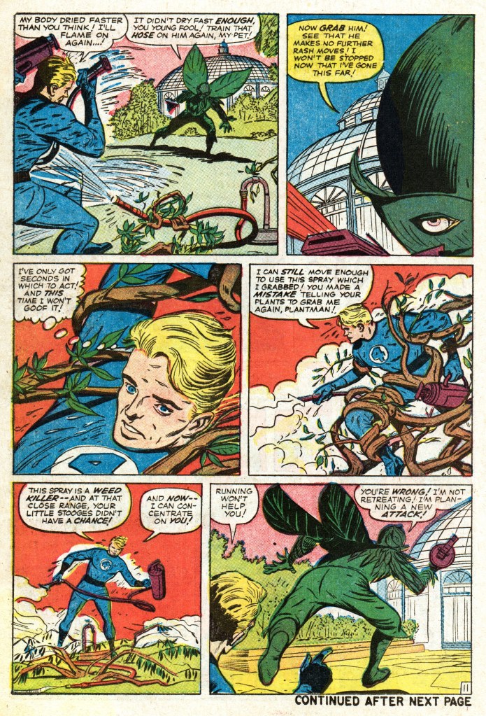 2. The big problem with early Plant Man is that the original concept limited him to making ordinary plants use their limited resources, hitting the Torch with acorns and dew and such. At some point his plant-hoodoo could actually alter plants into dangerous mutations, which made him reasonably formidable.