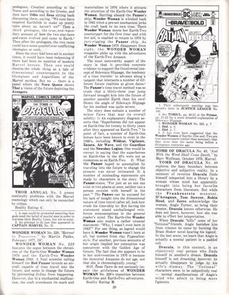 Continuing in our look at Mark Gruenwald’s pre-Marvel fanzine OMNIVERSE, dedicated to examining consistency in the depiction of fictional realities in comic books.