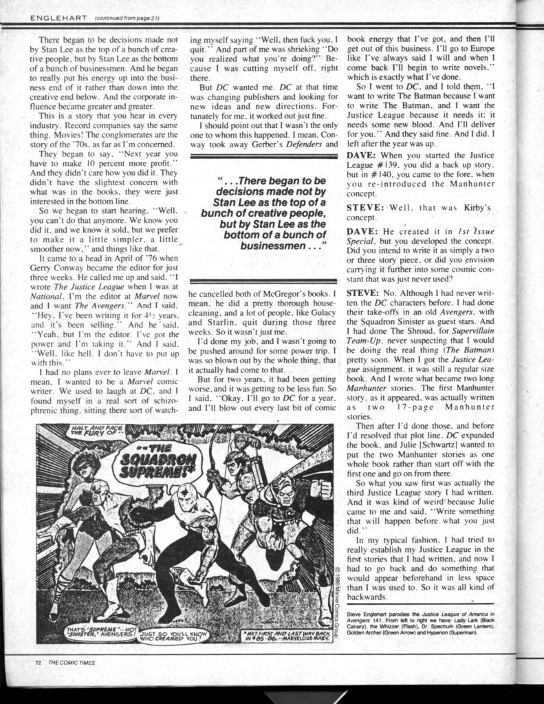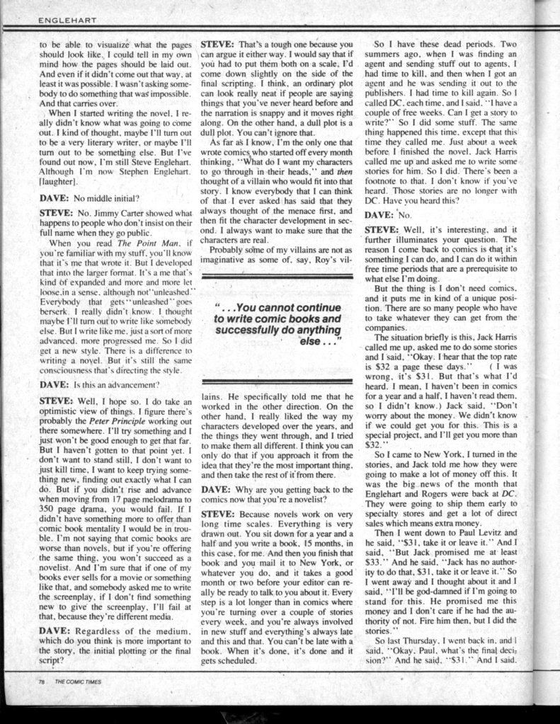 THE COMIC TIMES #2: Steve Englehart Interview