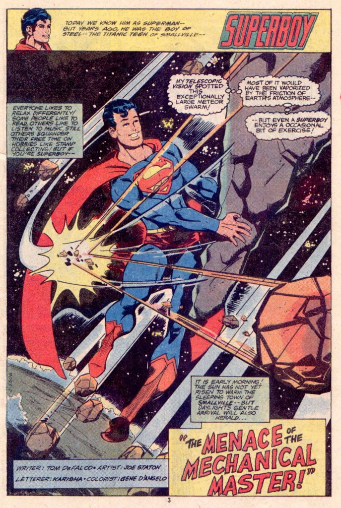 Each issue of SUPERMAN FAMILY gave you six stories, each one featuring a different player in the Superman cosmology. In the lead-off position was a Superboy adventure written by Tom DeFalco, late of Archie Comics, and illustrated by Joe Staton. In it, the Boy of Steel has a pressing day when he’s got to both contend with a new foe, the self-styled Mechanical Master who builds gigantic contraptions to loot Smallville, and also helping out with classmate Lana Lang’s bid to run for school President. It’s a fun, low-stakes tale, and both DeFalco and Staton execute the work rather nicely. Staton in particular is a good fit for the more laconic Superboy strip, with the strong cartoonyness of his style.