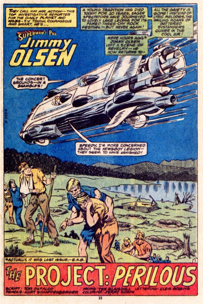 The second story, also written by DeFalco and illustrated by the reliable Kurt Schaffenberger, starred Jimmy Olsen. And not just Jimmy, but his cohorts in the Newsboy Legion from Jack Kirby’s seminal run on his title several years earlier. The Jimmy Olsen strip at this point was chock-full of continuity references to other earlier stories being woven together–on multiple occasions, DeFalco has told me that this was Nelson’s influence, and that their arrangement was something of a “one for you, one for me” sort of a deal in which DeFalco would take on the task of streamlining and exploring the continuity that Nelson wanted to play with in Jimmy Olsen in order to be able to do more universal stories in Lois Lane and Superboy and elsewhere. This installment sees Jimmy, The Newsboys and Speedy of the Teen Titans (who it will turn out is the nephew of the Newsboy Legion’s Guardian) infiltrate the DNA Project that isn’t yet named Cadmus.
