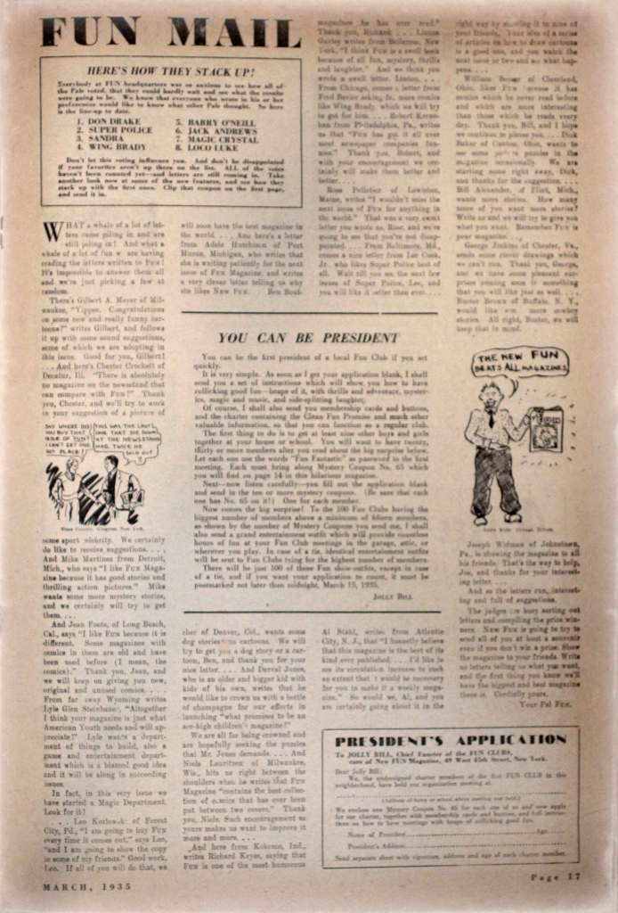 But even earlier than that, Gary Dunaier pointed out this page which ran in the second issue of NEW FUN, the comic that would eventually transition into being ADVENTURE COMICS. It wasn’t exactly a typical letters page per se, but it did print comments from the readers and it is earlier than either of the other two examples, so it counts. Its publisher was Major Malcolm Wheeler-Nicholson, who was a pioneer in the field of comic books and who released the earliest comics dedicated to completely new material rather than reprints of pre-existing newspaper strips and features.