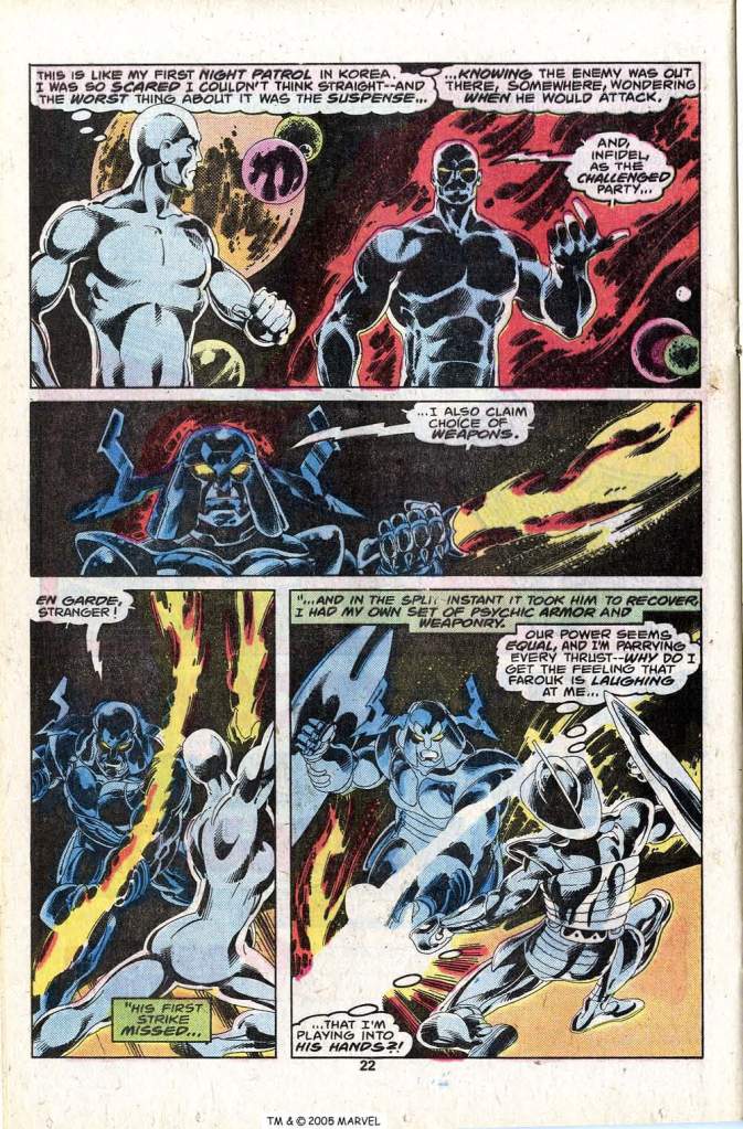 Entering a nearby cafe, Xavier finds himself confronted by Amahl Farouk, a local crime lord and fellow telepath. Challenged for the first time by an equal, Xavier engages Farouk in combat on the mental plane–which gives Byrne the opportunity to produce some wonderful Steve Ditko-like psychedelic environments. Farouk uses illusion and misdirection to get the upper hand on his foe, but in the end, Xavier susses out his game and kills him with a deadly mental strike. This was, of course, intended to be the one and only story that Farouk would be a part of, but of course he’s come back time and time again as the psychic being known as the Shadow King. Anyway, this was Xavier’s first encounter with an evil mutant (unless, I suppose, you count Magneto–but that history wasn’t all in place yet either) and it convinces him to return to his work. Though not to track down Ororo, who is clearly living on the streets. For a smart guy, Xavier is often pretty dumb.