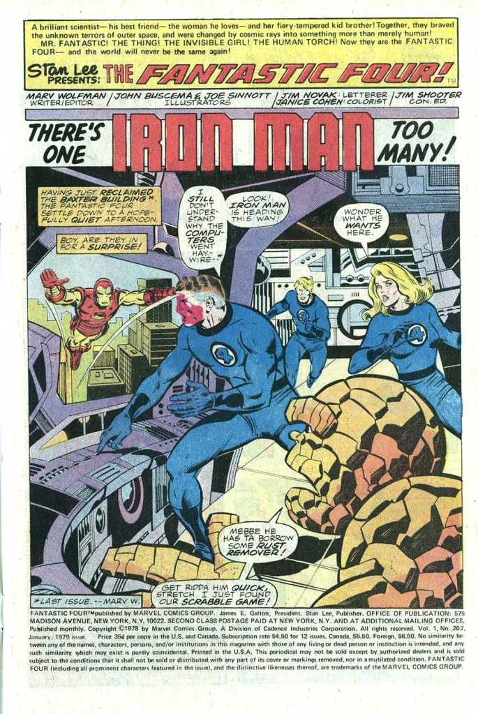 The next week, a new issue of FANTASTIC FOUR was released, thus reassuring me that my having missed the much-coveted issue #200 was a fluke. This was during the period when a new Fantastic Four cartoon series was running on NBC on Saturday Mornings–this was the version that replaced the Human Torch with HERBIE the Robot, and which was storyboarded largely by Jack Kirby and dialogued by Stan Lee and Roy Thomas and other Marvel writers. It was, to put things frankly, a bit of a dog, with lousy animation and pedestrian scripts. But of course, I was an avid viewer. In 1978, there wasn’t enough super hero and science fiction content available to be all that picky. Anyway, the show gets cover-blurbed here in an attempt to capture any new readers who may have seen it. Strangely to my eye, the fact that Iron Man guest-stars in this story isn’t mentioned at all (though he is depicted in the image, of course.) This seems like a violation of the Marvel policy of the era.
