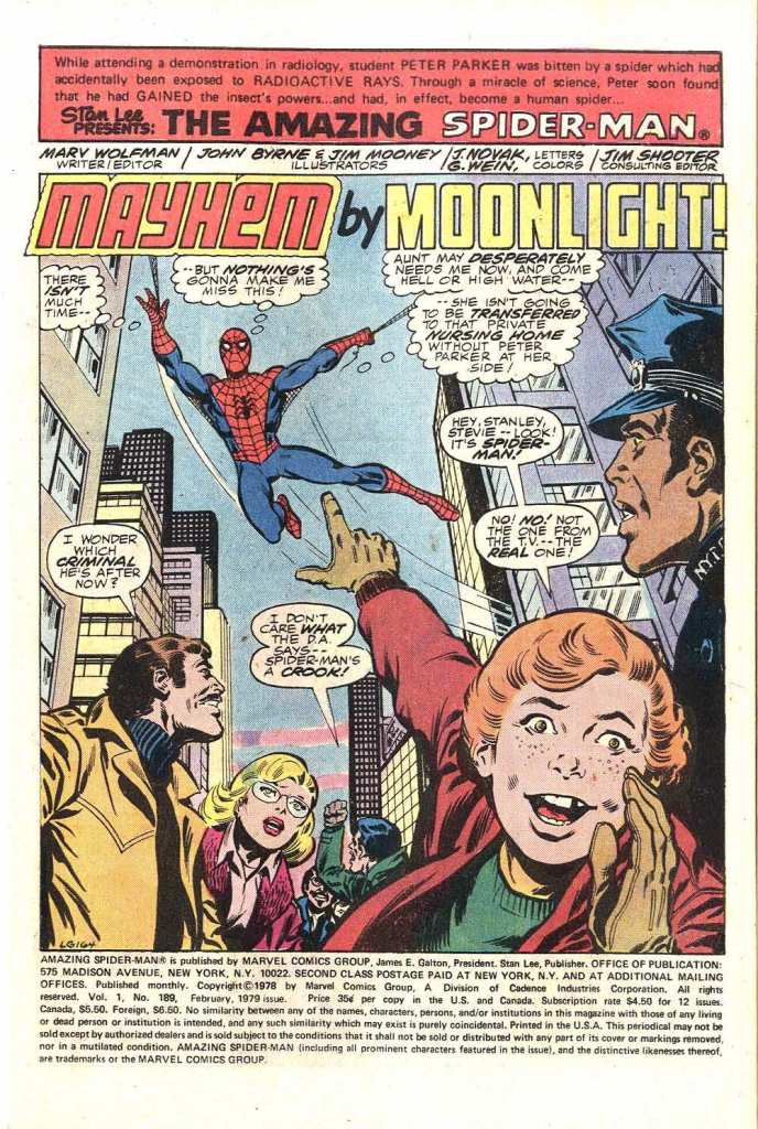 The next week brought another issue of AMAZING SPIDER-MAN, this one sporting a welcome fill-in art job from John Byrne. Byrne was already becoming a favorite based on his work on X-MEN and elsewhere, and he was fast enough that he could often be called upon Jack Kirby-style to layout a fill-in art job when the regular penciler of a series got behind the eightball. In this case, finishes were provided by Jim Mooney, who had been an on-again/off-again inker on the series back to John Romita’s days, and who kept everything looking on model. John’s real value, though, was in his storytelling, and in that capacity he was the equal of the greats of Marvel’s past. He hadn’t yet made the leap to wanting to write his own material, but you could see his storyteller’s instincts at work by how he composed the events of the story. In this era in which the artists were in control of a lot of the minutia of the plotting and pacing of a story, these were important qualities to have.