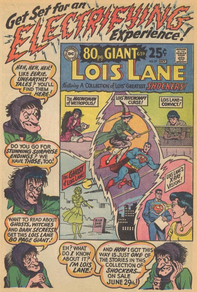 Next comes a very fun house ad for the latest 80 Page Giant, this one dedicated to the strange transformations that Lois Lane had been put through in several earlier adventures.