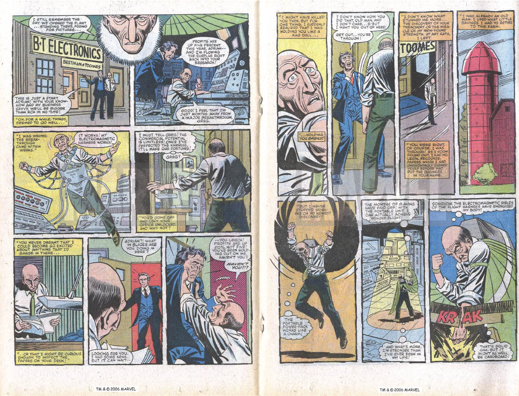 Closer to home, I’d been thoroughly bored during most of the Will O’ The Wisp/Roxxon/Tarantula storyline that had run through issues #234-237. That said, I was definitely intrigued by the introduction of the Hobgoblin in the next two issues. And this two-parter, in which Stern gave the Vulture a backstory and some pathos, was well done as well. But somehow, I just wasn’t into it all anymore. The harsh inking of Frank Giacoia over penciler John Romita Jr. on this issue likely didn’t help, though Giacoia was an excellent inker whose work I typically enjoyed. So when it came time to evaluate what comics I might be able to cut, I had to admit that AMAZING SPIDER-MAN was on the chopping block. I can remember staring at the cover of the next issue, #242, which featured the Mad Thinker and his classic android and being intrigued, but not enough to check it out.