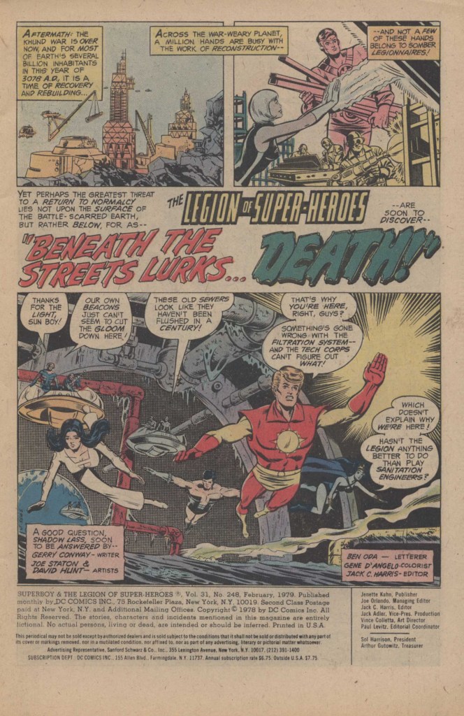 Yeah, the Conway (and Thomas) runs were just there for me too. I have loved the Legion since Cockrum (also loving what came before once I discovered it) but it was that love that got me through things like this issue. Seeing the art accompanying your thoughts makes me wonder why it took so long to get rid of Cosmic Boy’s ridiculous Grell costume. Staton made it look better than it had ever before but no one else, Grell included, ever made it look good. BTW, did anyone ever read why Grell thought almost naked equaled future fashion?