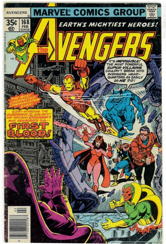 The first issue I bought new was this one, #168, the second part of the well-regarded Korvac Saga. And…I didn’t like it. I found it confusing, despite the fact that it was written by Jim Shooter, for whom clarity was a necessity. But this particular issue guest-starred the Guardians of the Galaxy from the future as well as, for no good reason, Nighthawk of the Defenders, so I couldn’t even quite figure out who the Avengers were. In context, it was a great issue, with the team first being approached by their recurring nemesis, government liaison Henry Peter Gyrich. But it put me off, and I didn’t buy another issue for three months.