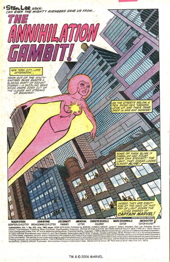 Avengers#233 is the second time an expanding energy field originated from the Baxter Building, the first was in Fantastic Four Annual#14 ( 1979 ) do to Nicolas Scratch. Well looking at the covers ( just checked comics.org ) apparently I stuck around, but I know I didn’t enjoy the art after Perez left nor a number of the plots.
