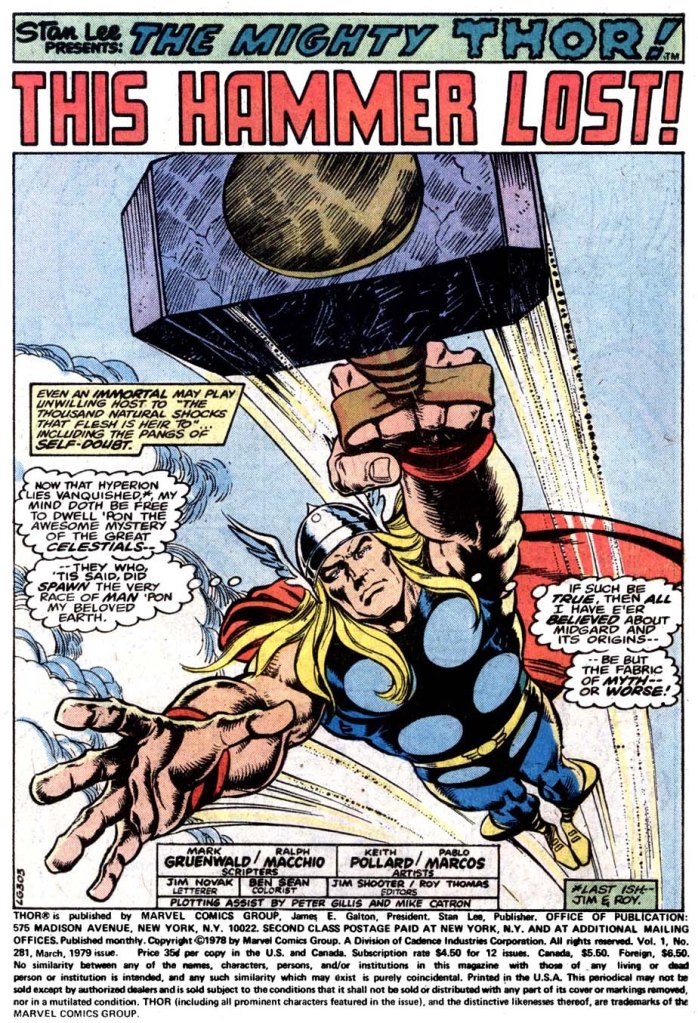This issue, the first of a two-part storyline, was the work of co-writers Mark Gruenwald and Ralph Macchio. Both on staff at Marvel during this time as assistant editors, the pair had joined forces as a writing combo to better improve their chances of landing writing work and making a good effort at it when they did. Shortly after this, they would begin a well-regarded run on MARVEL TWO-IN-ONE, saving that series from its doldrums. But here, the pair was motivated by more mundane matters. Even in this era before the Official Marvel Handbook, Gruenwald in particular was keen on categorizing and organizing the continuity and mythology of the Marvel Universe. There were aspects of things that had been established that bugged Mark, and so he’d occasionally take it upon himself to write a story like this one, where the goal was to get rid of some inconvenient fact that he didn’t care for. In this instance, it was the early-established idea that Thor’s hammer could allow him to travel through time.