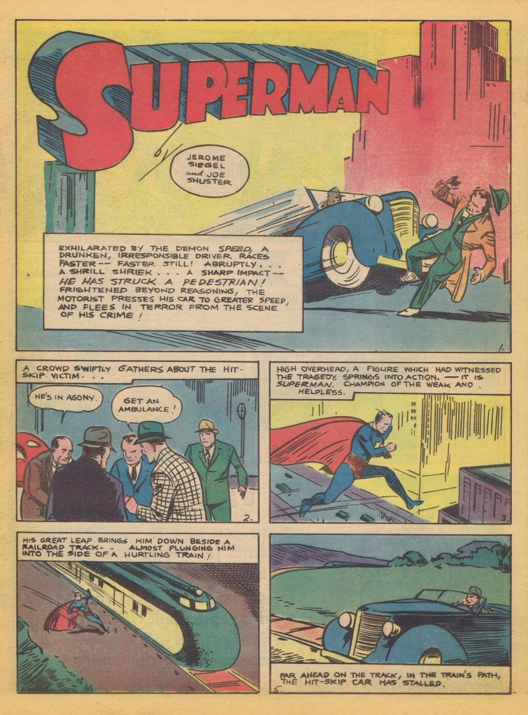1. That is incorrect. After having been told by the syndicates they submitted samples to to “get to the action”, Siegel and Shuster decided to begin their new samples at the heart of the action, to get across Superman’s appeal. There was no earlier portion until they were asked to provide one for Superman #1.