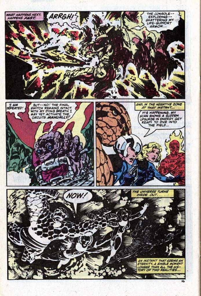 11. Fantastic Four 267 might have been the issue that got me into comics. It certainly made me a fan of the title, and it’s the standard by which I still compare all depictions of Reed Richards. Whenever a writer makes him out to be full of ego, lacking in empathy, unable to focus on the issue at hand (or that Reed can’t project the same clear aura of danger and unchallengeable force of will as Doctor Doom, when appropriate)…naw, that writer messed up. This is probably my single favorite page of comics ever.