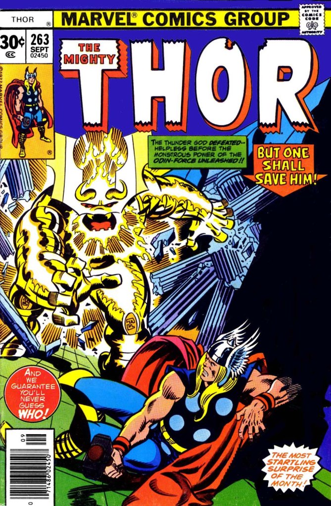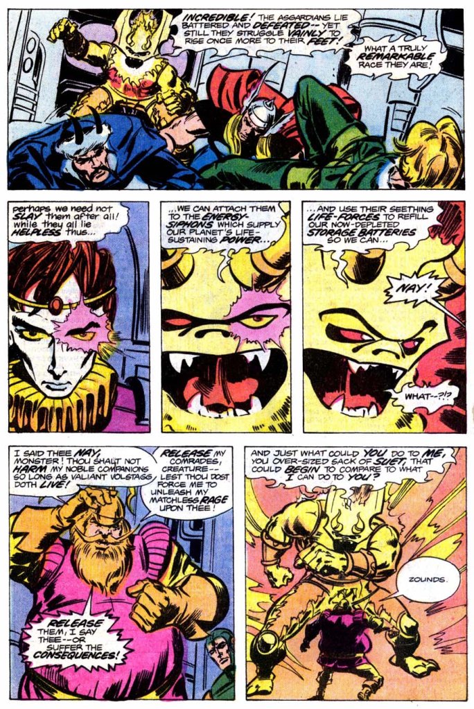 This was the second of two issues of THOR that were contained in the SUPERHERO GIFT PACK that I received for Christmas in 1978, and its story picked up where the preceding issue had left off, fortunately. So I rolled right in, interested to see what would become of Thor and his posse as they confronted the living Odin-Force monster that had been created by the Templeworlders who had seemingly sucked Odin dry.