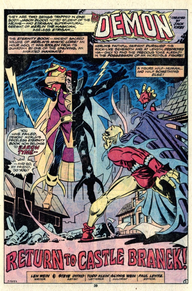 I recall being a bit disappointed to see Ditko drawing the Demon strip, if only because the previous installment had been by Michael Golden, who was fast becoming a favorite of mine. But looking back, Tom is correct — Ditko did a fantastic job.