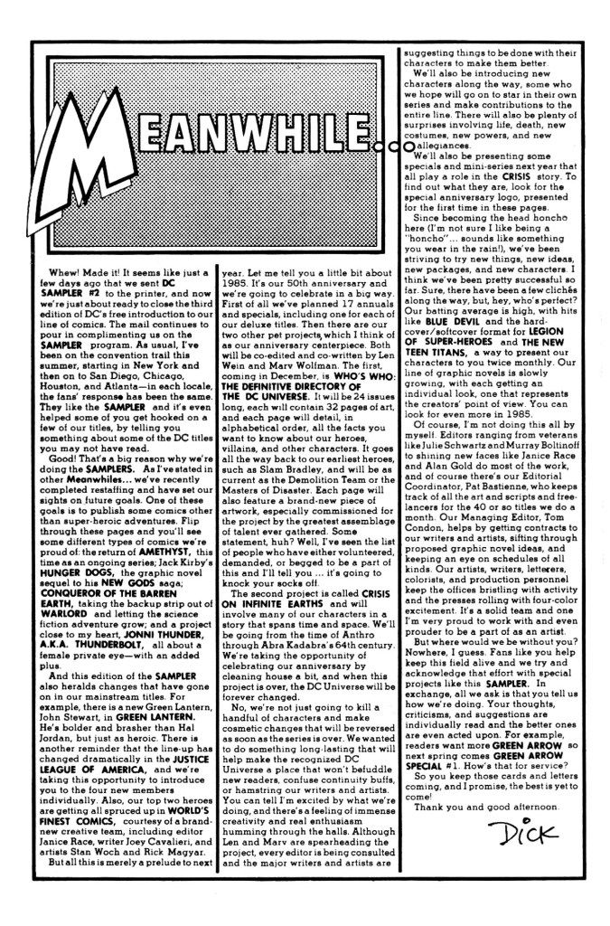 DC’s Executive Editor Dick Giordano lays out the table in one of his typically-avuncular MEANWHILE columns.