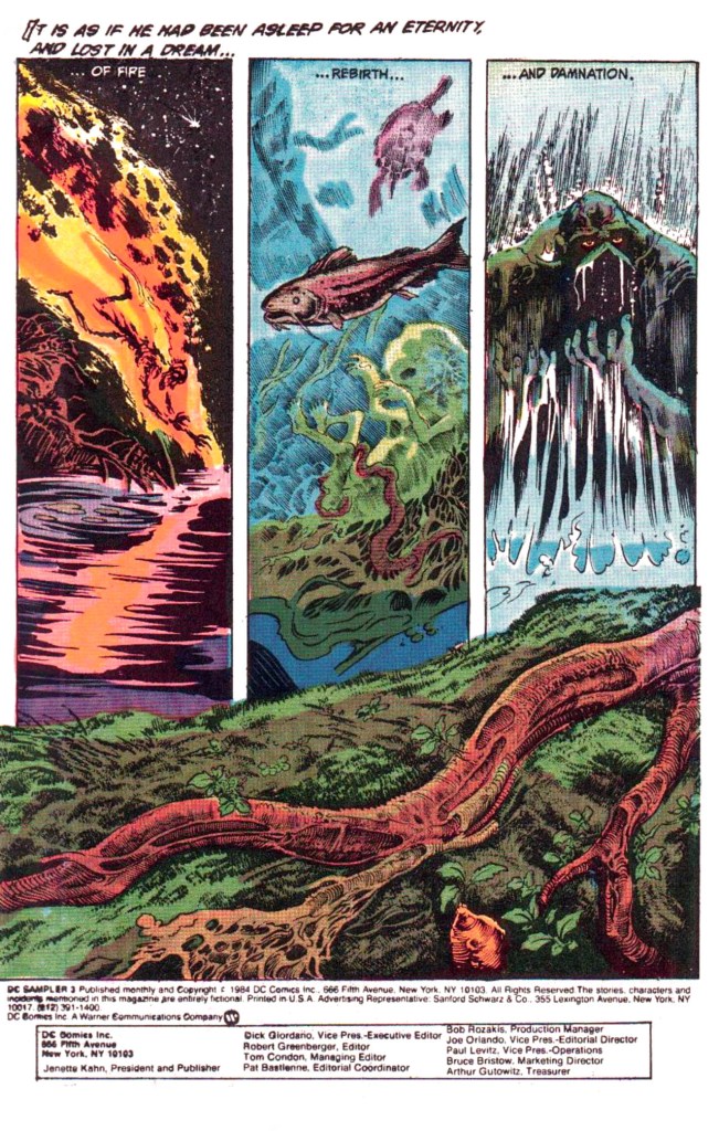 Having dedicated themselves to making strides within the new Direct Sales marketplace, an arena in which Marvel had up to this point been overwhelmingly outselling pretty much everybody, DC produced a number of issues of DC SAMPLER, an overview and preview of their line intended to be given out at comic book specialty stores across the country and hopefully entice some new readers into trying out their books. The material in these samplers were all-new, and I can recall them being greeted with a certain amount of excitement. This last edition, DC SAMPLER #3, came out in the closing days of 1984 and looked ahead to 1985’s releases.