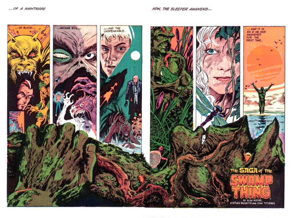 The opening spot in this Sampler is given over to a dark horse choice: SAGA OF THE SWAMP THING. But the new creative team of Alan Moore and Stephen Bissette were getting a lot of notice for a title that nobody had been especially paying attention to, and this was one attempt to make the book catch fire in a larger way–which is did.