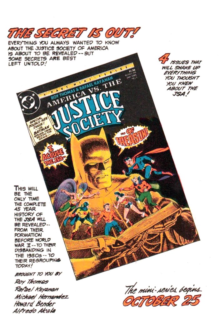 The AMERICA VS. THE JUSTICE SOCIETY limited series was perhaps writer Roy Thomas’ ultimate project. It allowed him to lay out and reinterpret the entire history of the heroes of his childhood, the Justice Society of America, within the context of a new adventure.