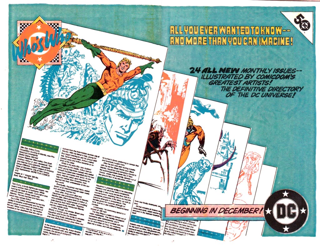The DC WHO’S WHO was the company’s answer to the popular OFFICAL HANDBOOK TO THE MARVEL UNIVERSE. it was more centered on presenting great artwork than the density of information that the Handbook would routinely provide.