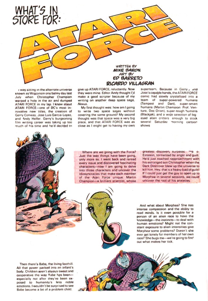 Mike Baron and Eduardo Barreto take a strangely text-heavy approach to spotlighting their series ATARI FORCE. This book had a decently long run for a tie-in series and is positively remembered today.