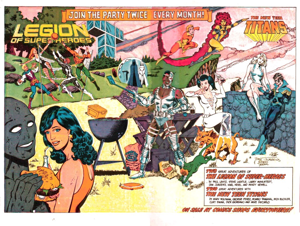 Both LEGION OF SUPER HEROES and NEW TEEN TITANS had started releasing two editions every month: the usual one aimed at the newsstand market, and a second book, set one year ahead of the other and printed on much nicer paper for the Direct Market. So for a year, you were getting two issues of each title every month.